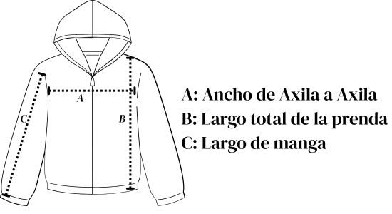 | Talle | (A) Ancho | (B) Largo Prenda | (C) Largo Manga |